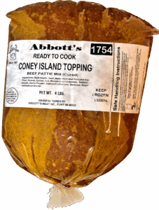 For those who don’t have access to the 25# bag of Coney Topping Mix from Abbott’s Meat, the recipe for creating Flint Coney sauce from scratch involves starting with a whole beef heart, freezing and grinding it before adding textured vegetable protein, to recreate the base of what’s in the bag that’s distributed to restaurants. A few notes are included to help understand older methods of creating the sauce which are no longer in-use today.