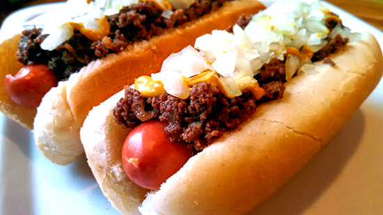 - To serve, cook the sauce over medium heat until the beef heart just its red color. Simmer for at least 30 minutes. Serve over grilled Koegel Viennas, and top with good yellow mustard and finely-chopped white onion.